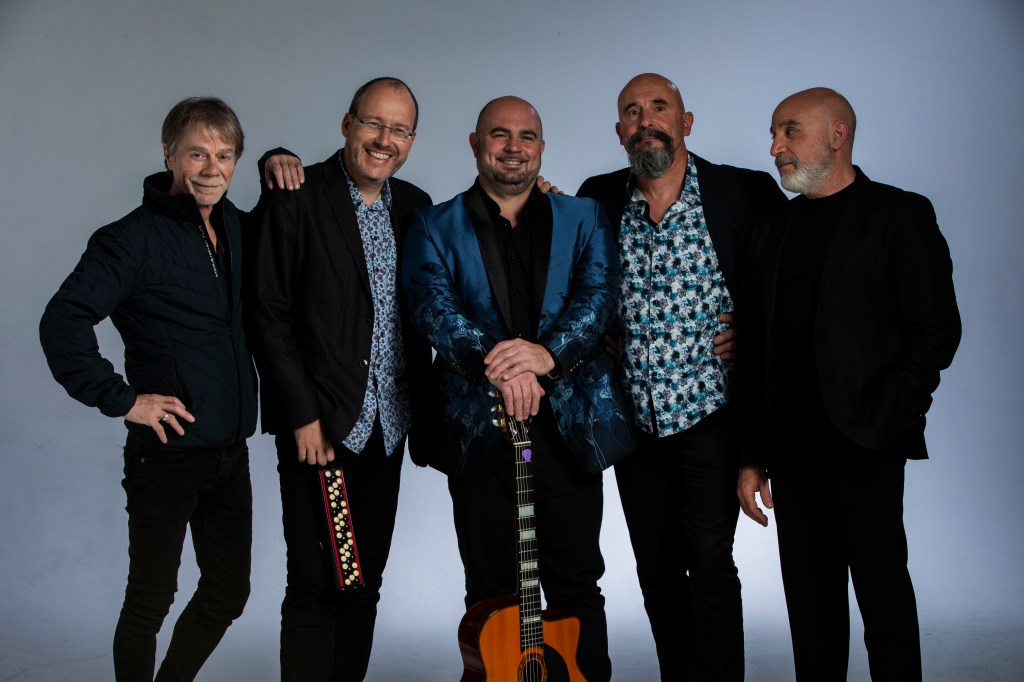 Along with Samson Schmitt on lead guitar, the group members are Ludovic Beier on accordion and accordina, Pierre Blanchard on violin, Antonio Licusati on bass, and Michael Harris on rhythm guitar.