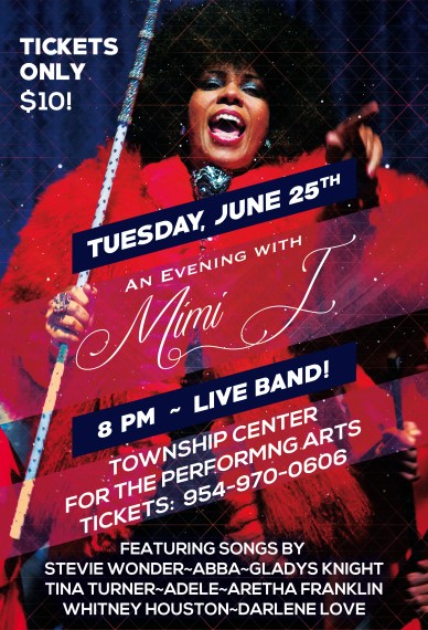 Tickets for An Evening with Mimi J are $10 and are on sale now. Tickets can be purchased by calling the Township Center for the Performing Arts at 954-970-0606.