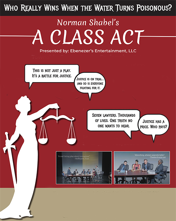 COCONUT CREEK, FL: A major chemical company pours cancer-causing waste into the water supply, and a high-powered law firm brings a class action lawsuit on behalf of thousands of “the little people” – who might die from the poisonous water. Who wins? Who loses? A Class Act, Norman Shabel’s intriguing and timely look at the inner workings of our justice system will ask and possibly answer these, and other questions when the play runs from June 20th through June 29th at the Township Center for the Performing Arts.